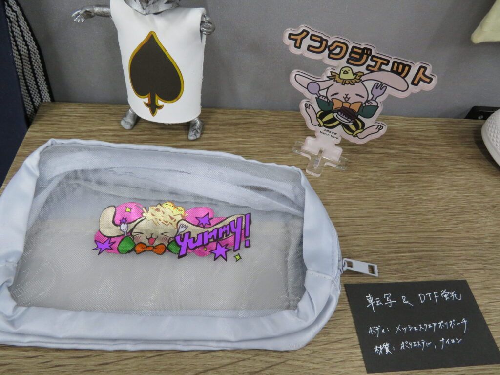 同社は検査業務で培われた検出力や色合わせの技術を背景に、キャラクターの表情や複雑なテキスタイルデザインを再現。アニメ・ゲーム業界のオリジナルグッズや、企業の販促品制作において製品を提供する。既製品への刷り込みだけでなく、生地の状態でプリントしてから裁断・縫製を行う工程管理が可能な点も、自社一貫体制を有する同社の特徴となっている。