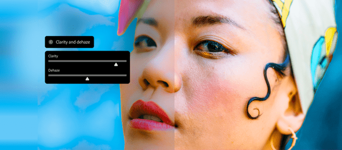 非破壊編集を強化する機能として、新たに「明瞭度」「かすみの除去」「粒子」の3つの調整レイヤーが正式に一般提供された。これにより、元の画像を損なうことなく、マスク対応のレイヤーベースで大気の霞の解消や被写体のシャープ化、画像への立体感の付加が可能となっている。