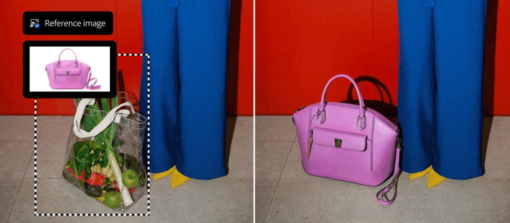 特に「生成塗りつぶし」における「参照画像」機能が大幅に強化された。アップロードした画像の特徴を形状認識処理によって正しく理解し、大きさや角度、照明を適切に再調整してシーンに馴染ませることで、生成結果に対する高度なコントロールを提供している。
