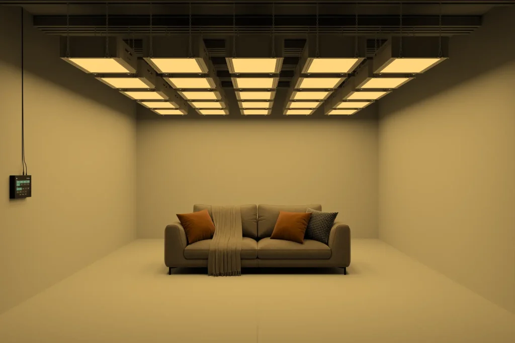 新たに登場する「Judge LED Plus」は、従来モデル(D53.5×H54.5×W71cm)よりも大きいD70×H76×W132cmの設計。さらに、天井から吊り下げて使用できる「Luminaire(ルミネア)」、および照明条件を統一した評価スペース「ハーモニールーム」もラインアップに加わることで、より幅広い業種・現場のニーズに応える構成となった。