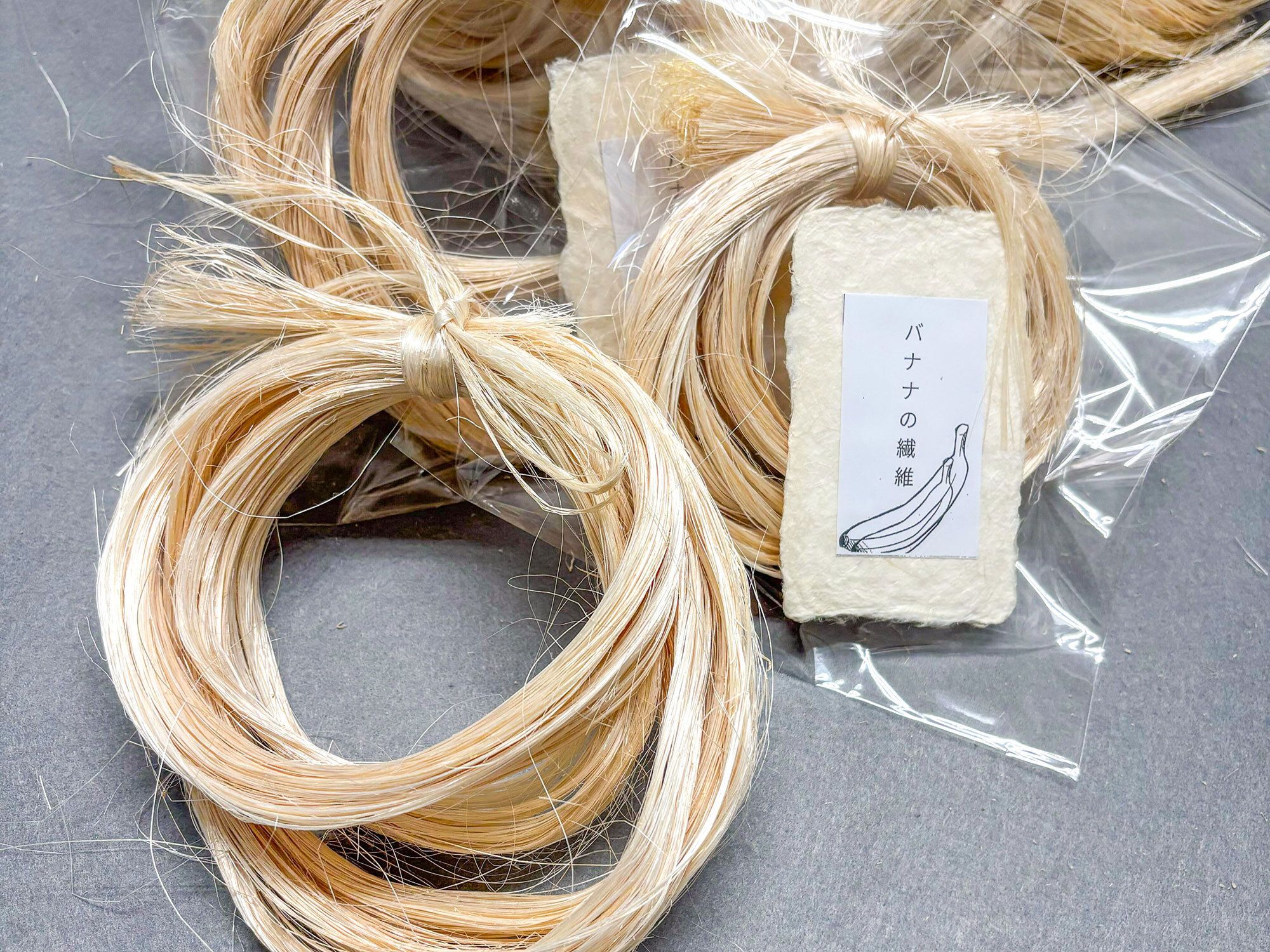 販売する「バナナの繊維」は、しなやかで適度な強度があり、アイディア次第で結束素材や手芸、アート作品の材料など様々な用途で利用できる。今後はオンライン販売に加え、自然素材を扱うイベントへの出展も検討している。