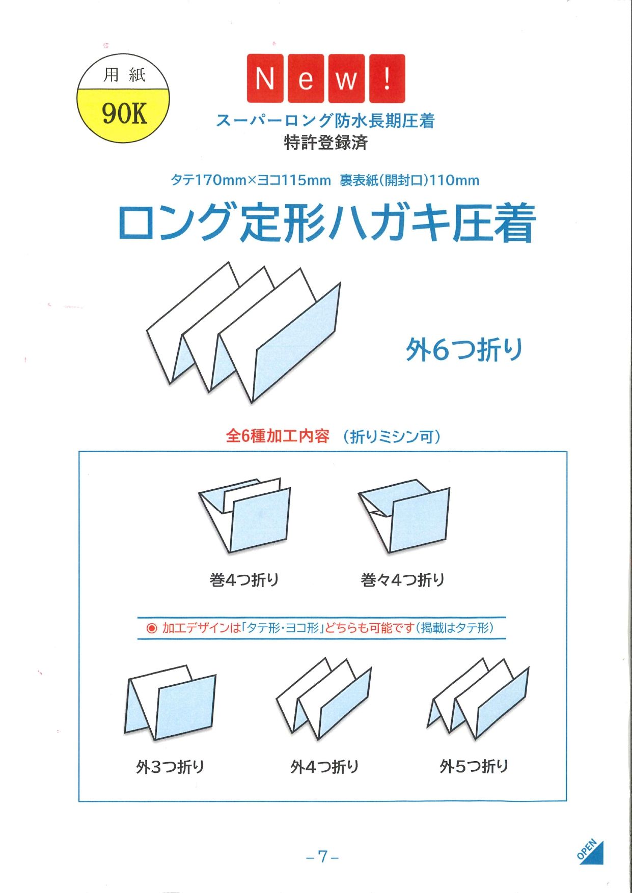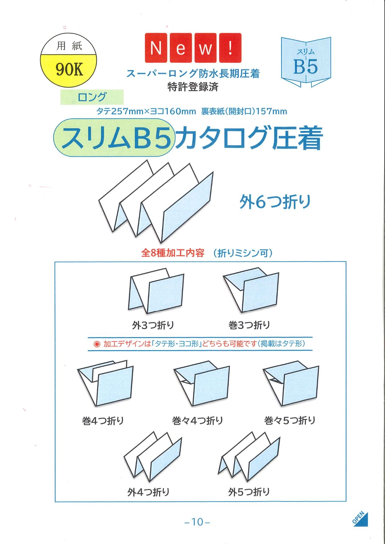 スーパーワイドロングの長尺DMは、視覚的インパクトが強く、店頭POPやミニパンフレットに近い訴求力を持つ。防水・長期耐性を付与することで、屋外利用や長期掲示にも対応し、DMの枠を超えた販促ツールとしての価値が高まっている。
