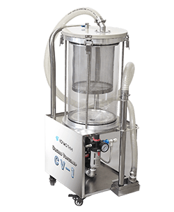 切削油と切削屑を同時吸引する電源不要のエアー駆動式。操作が簡単なシンプル設計となっている。