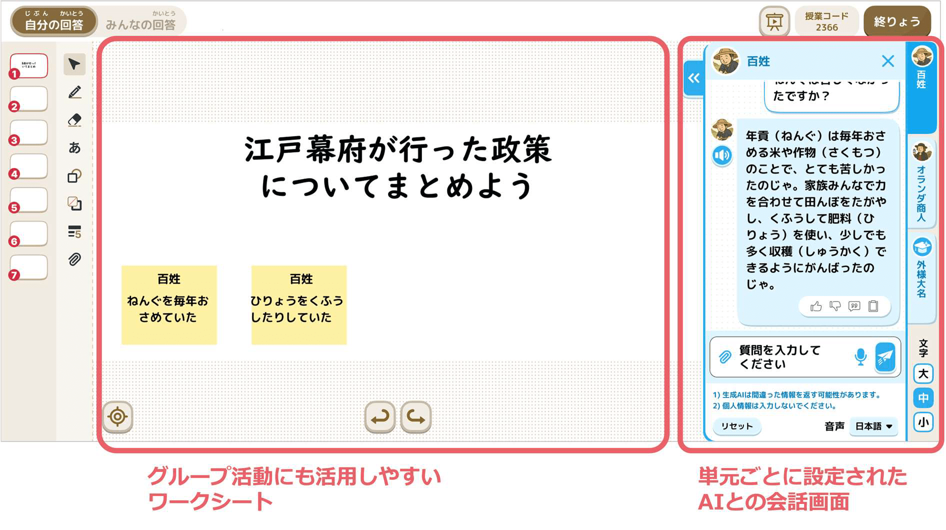 同サービスにおいて生成AIは、単に答えを示す道具ではなく、問い返しや言い換え、根拠の確認を通じて思考を引き出す手段として位置付けられている。