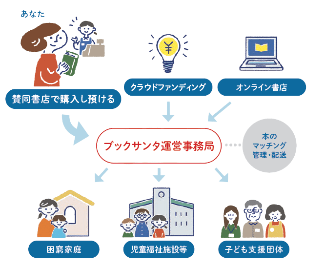 ブックサンタは、さまざまな事情により体験格差を抱える全国の子どもたちに、新品の本を届けることを目的としたプロジェクト。参加者が協力書店やオンライン書店で本を購入し寄贈すると、全国の支援団体を通じて子どもたちのもとへ本が届けられる仕組みとなっている。