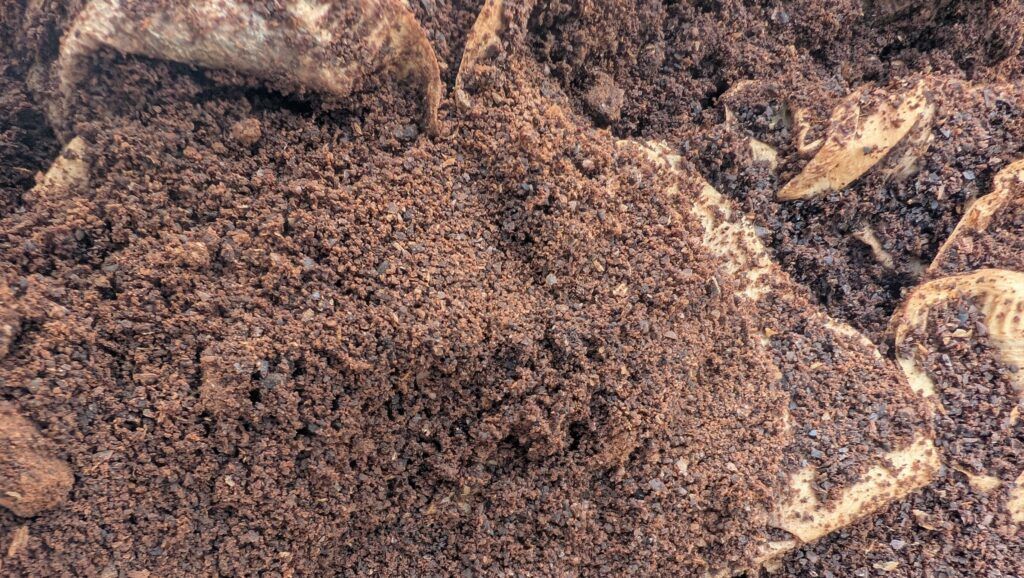 コーヒーの焙煎・抽出工程では日々大量のコーヒーかすが排出される。一方、ハンドドリップで使用した紙フィルターなどが混ざることから、アップサイクルなどによる付加価値の高い活用が難しいという課題があった。年間約40トンの焙煎を行うロクメイコーヒーも、コーヒーかすの有効な活用方法を見いだせずにいた。