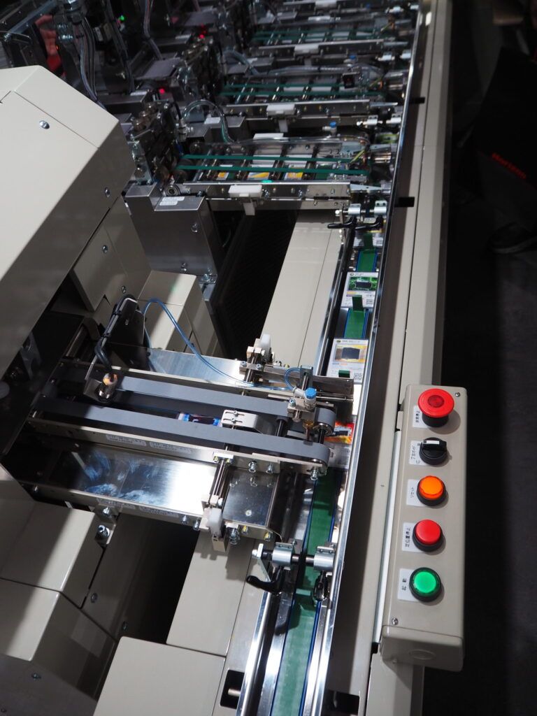 デジタル印刷対応中綴じ機StitchLiner Mark VではPODで印刷・丁合された刷本のバリアブル中綴じ製本を披露。