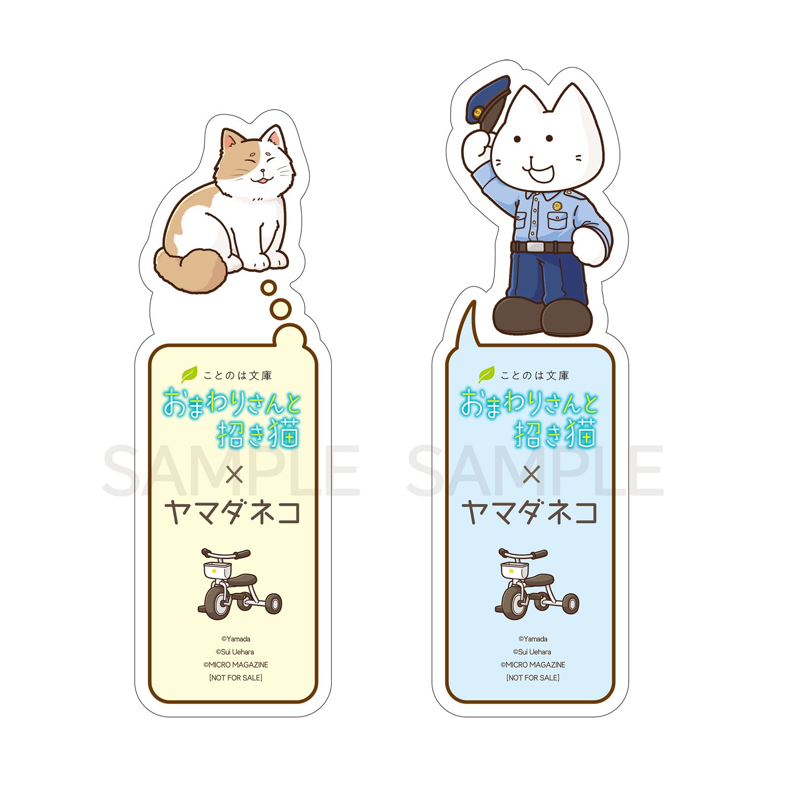 さらに、東海エリアの協力書店では、『おまわりさんと招き猫』シリーズを1冊購入するごとに、特製しおり(全2種)を1枚配布する。特製ブックカバーと同じく、ヤマダネコ×『おまわりさんと招き猫』の描きおろしコラボイラストを使用アイテムとなっている。