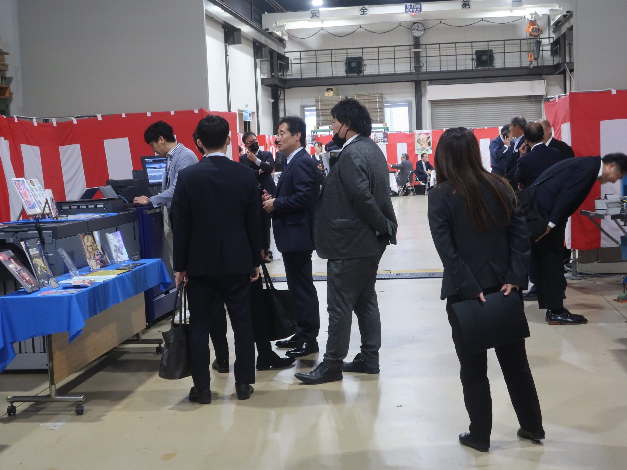 来賓から愛知県製本工業組合岩間正晃理事長、愛知県トムソン工業協同組合加藤実理事長が同展への期待を述べた。岩間理事長は「製本の製品、モノづくりをBtoBから一般消費者に御朱印帳やメモ帳などを販売する体験型への取り組みを進めている」と挨拶した。