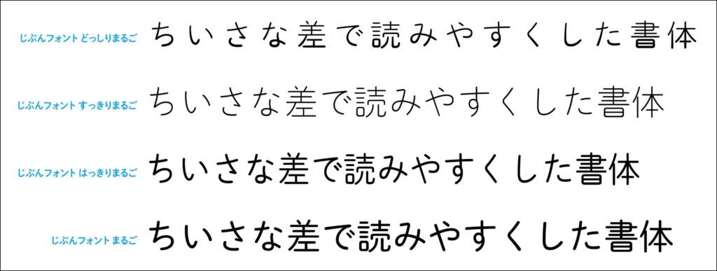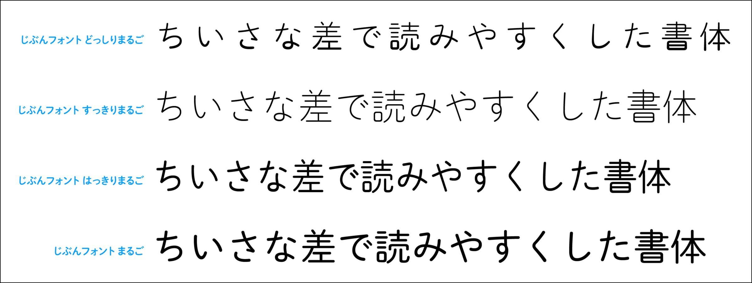 「じぶんフォント」はJIS第1・第2水準(9,498文字)に対応した「Adobe-Japan1-3(StdN)」基準に準拠しており、今後さらにバリエーションの拡充を予定している。 - 「秀英丸ゴシック」をベースに開発した柔らかく読みやすいデザイン