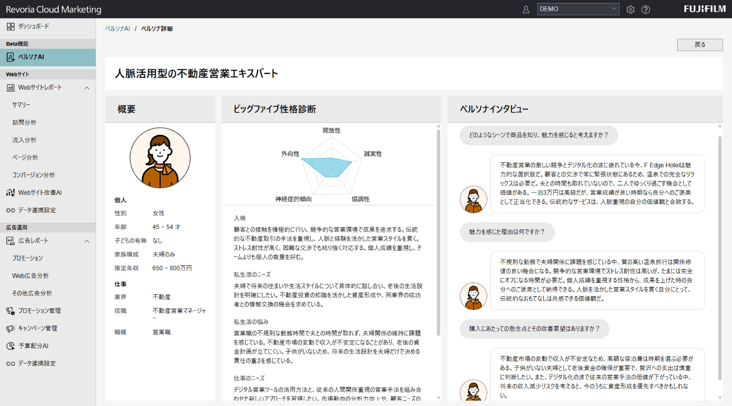 富士フイルムBI 「Revoria Cloud Marketing」に新機能「ペルソナAI」ベータ版を提供開始 統計データに基づきペルソナ設計から広告案作成までを自動化
