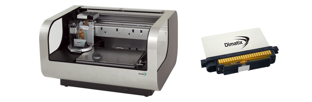 マテリアルプリンターDMPシリーズは、機能性液体を微量かつ高精度に吐出し、材料評価やパターン形成を行う卓上型の装置。回路描画や電池の層形成、生体材料の造形など、インクジェット技術を応用した幅広い分野の研究開発に活用されている。開発初期段階において量産が難しい高価な液体も、約1.5mLという少量からテストが可能なため、材料消費を抑えた効率的な実験を支援する。