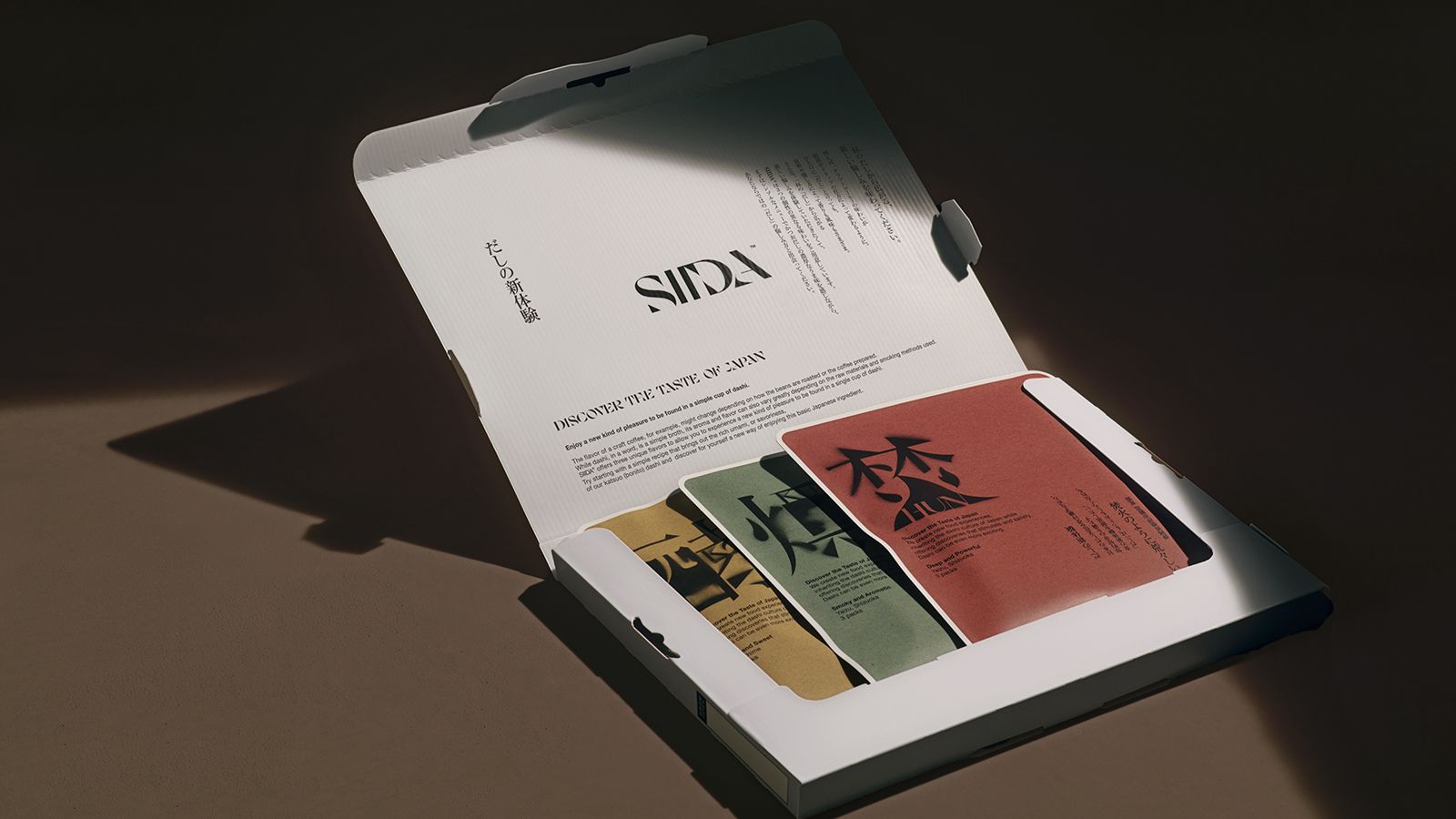 味の素の「SIIDA」は、かつおだしの奥深い世界を体験してもらうための新ブランド 。スプレーアートを用いた文字デザインや、外箱で調理方法とともに製法のストーリーを丁寧に伝えるパッケージ構成が評価された 。