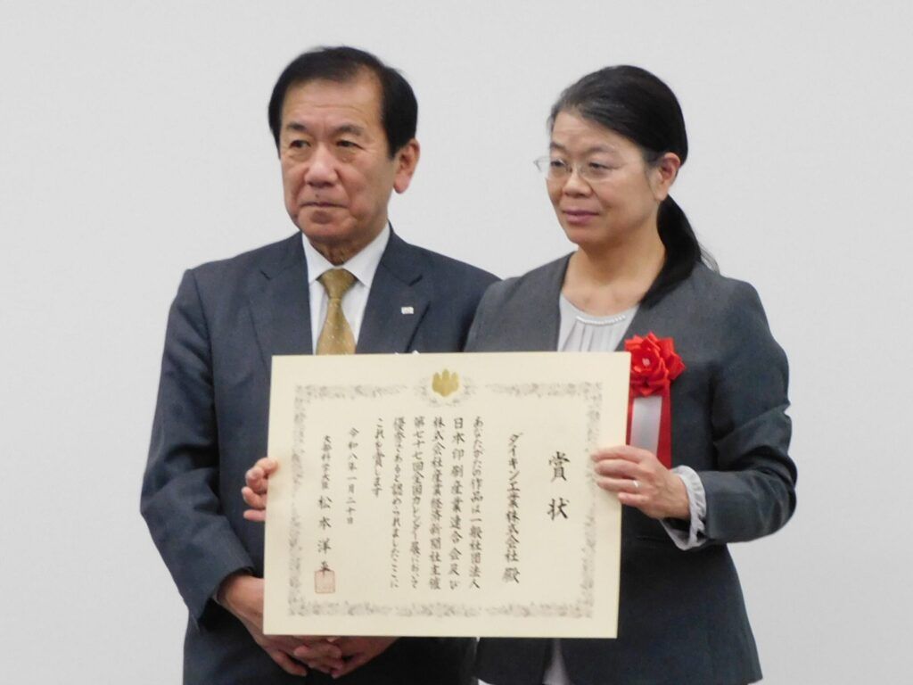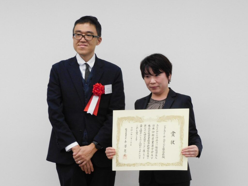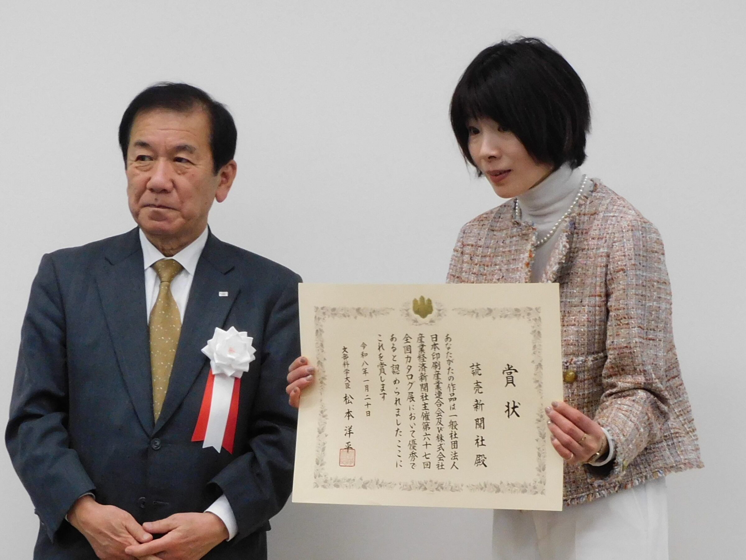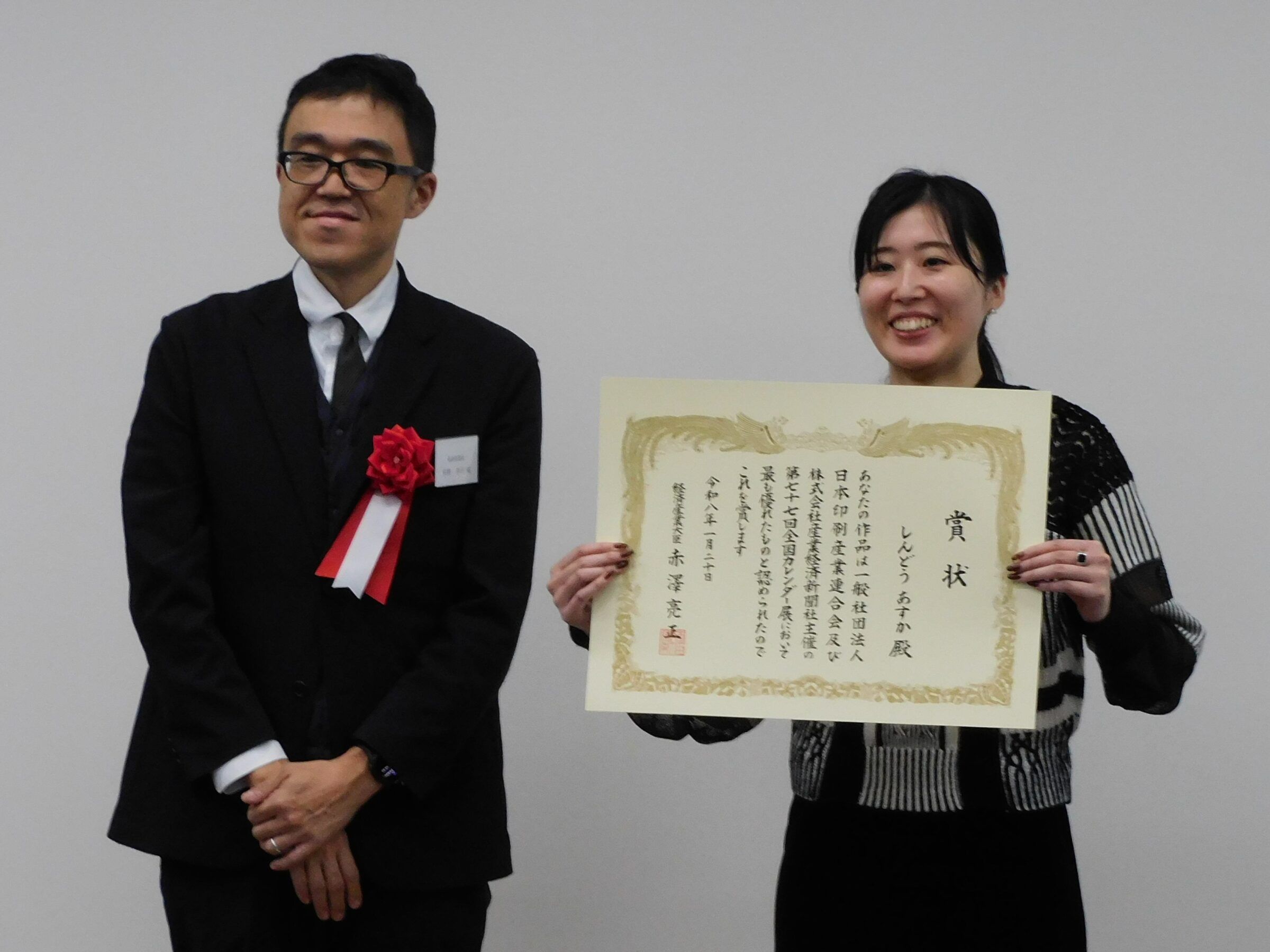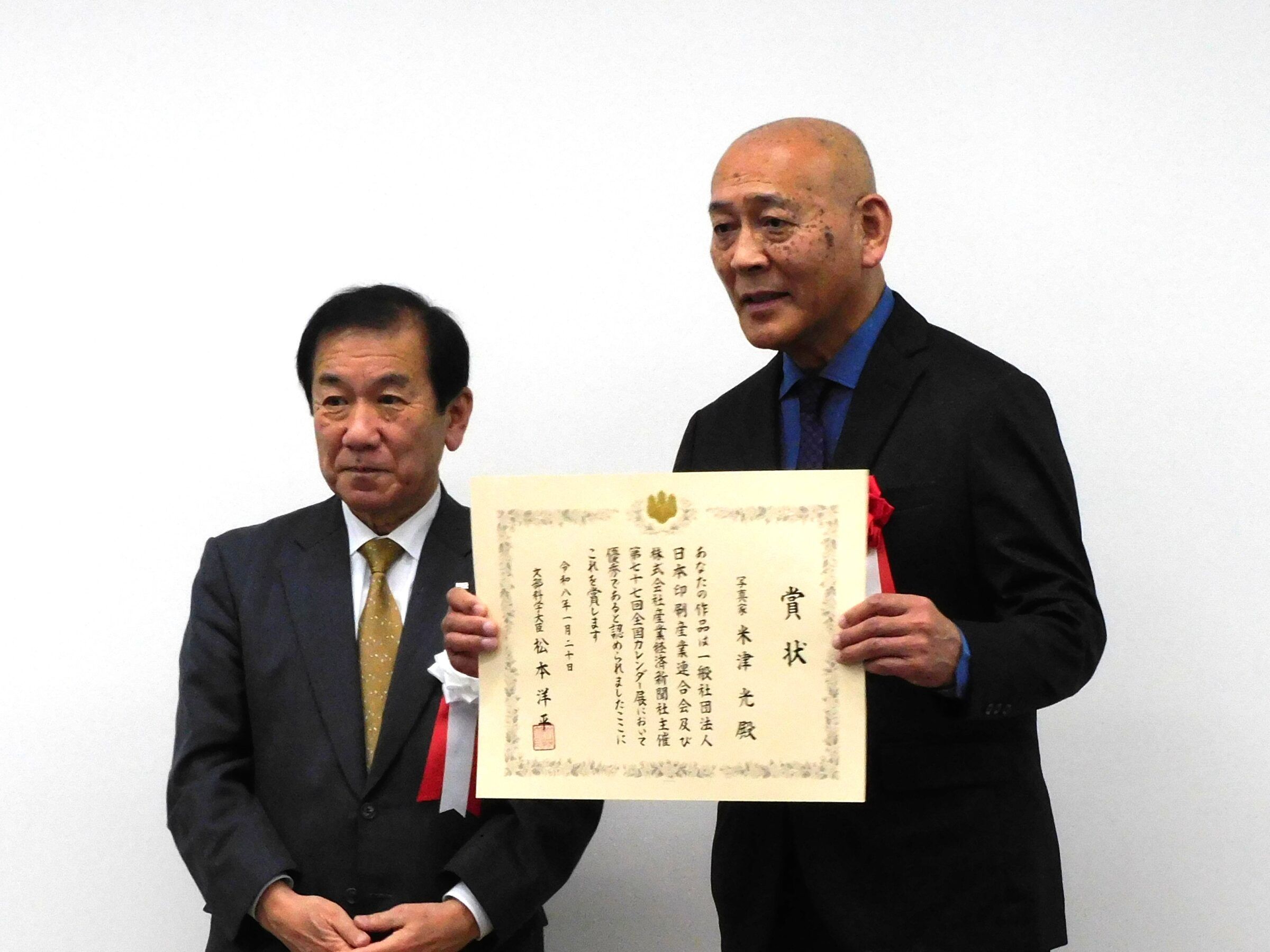 日本印刷産業連合会(日印産連)と産経新聞社が主催する「第77回全国カレンダー展」および「第67回全国カタログ展」の合同表彰式が1月20日、日本印刷会館で開催された。会場では「経済産業大臣賞」「文部科学大臣賞」「経済産業省大臣官房商務・サービス審議官賞」の授与が行われた。表彰式の後には受賞者を囲んで歓談した。