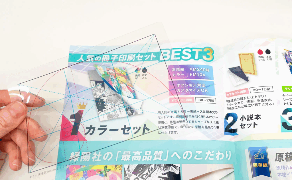 緑陽社 「すぐに黄金比がわかるクリアカード」公式BOOTHでオンライン販売 イラストやデザイン制作に使える透明フィルムのハガキ・カードサイズの2枚セット