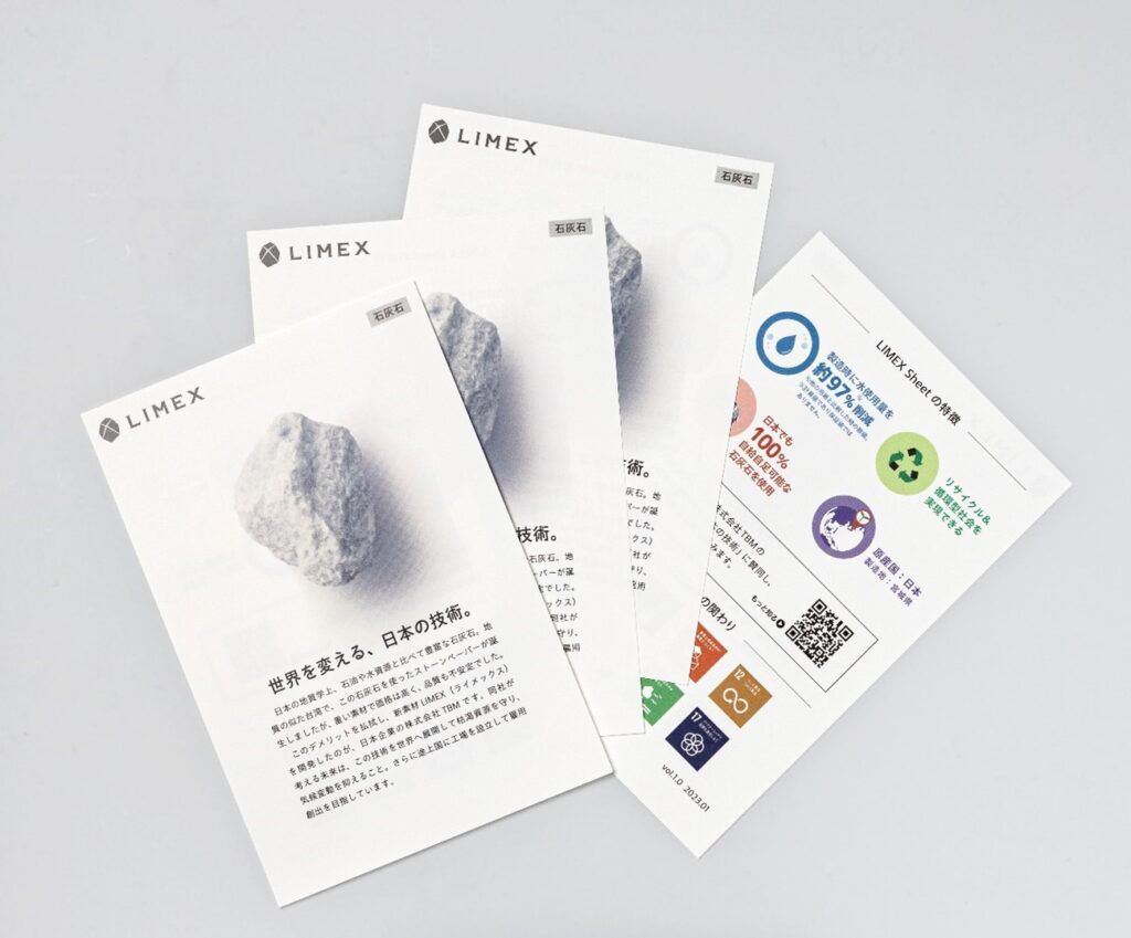 高速オフセットでは、環境配慮紙など地球に優しい用紙で印刷をしたいという問合せが増えているため、顧客に用紙開発の意図を理解していただき、自社に合った素材を選ぶ選択肢を増やすため、LIMEX Sheetの取り扱いを開始した。