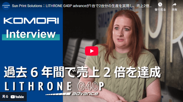 KOMORI 公式YouTubeで新動画公開、米Sun Print Solutions社の導入事例 「LITHRONE G40P advance」で生産効率が2倍に