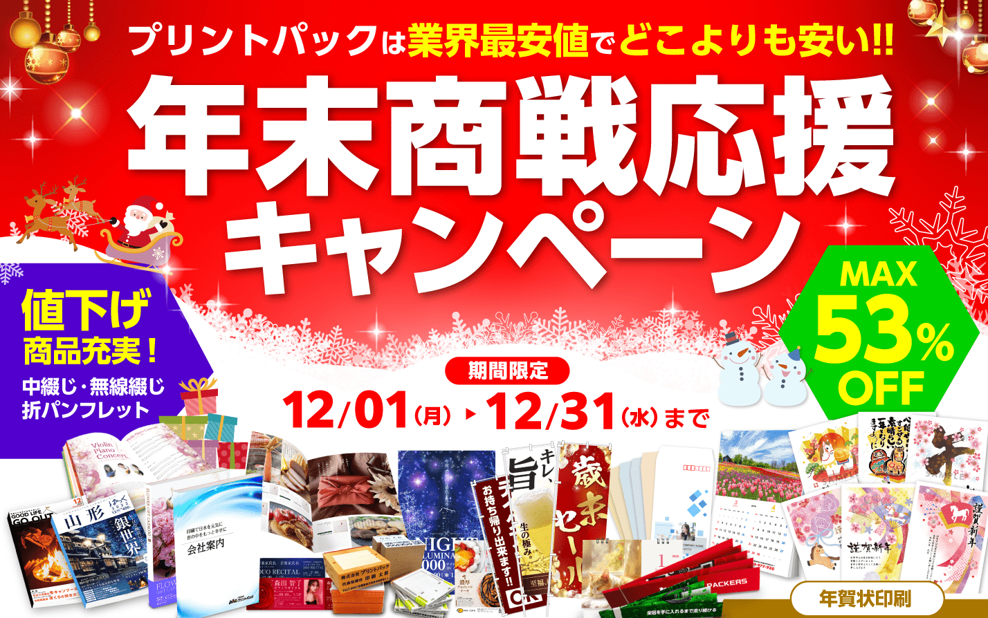 プリントパック 「年末商戦応援キャンペーン」開催、12月31日まで のぼり印刷、チラシ、カレンダーや冊子まで多彩な販促アイテムを特別価格で展開