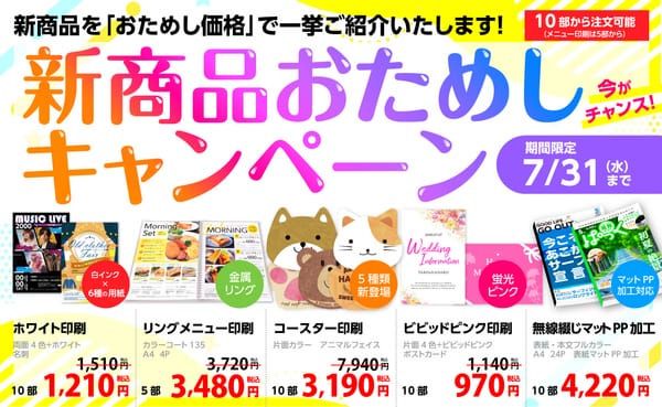 印刷通販プリントパックは、7月31日までの期間限定で「夏の販促・集客応援キャンペーン」を開催。最大82%OFFという大幅な割引で、集客・販促に役立つ各種印刷物を提供する。 本格化する夏商戦を前に、企業や店舗の販売促進活動 […] -