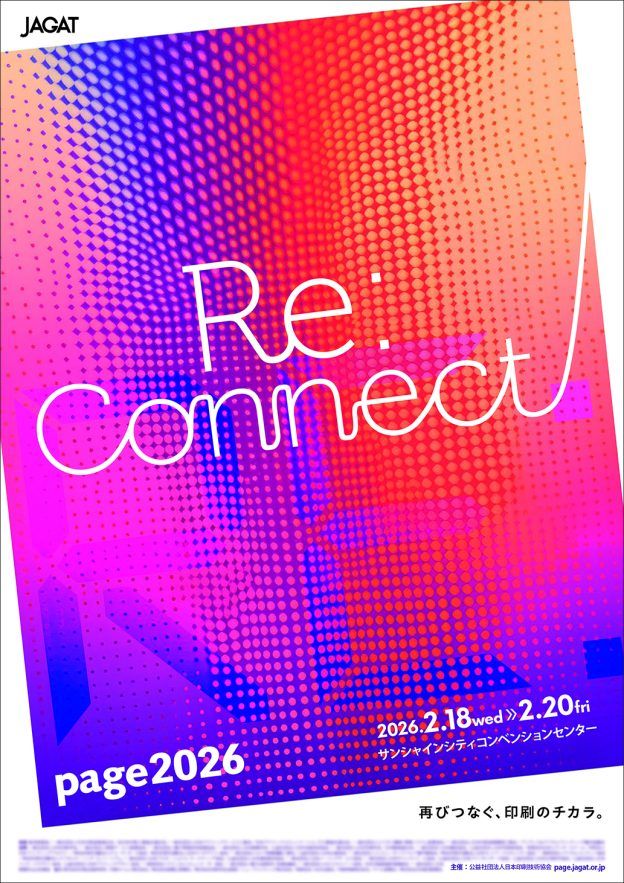 1988年に始まったpage展は2026年で39回目を迎え、印刷メディアビジネスを取り巻く最新動向を発信する重要なイベントとして定着している。今回のテーマは「Re:Connect ~再びつなぐ、印刷のチカラ」。前回の「協奏」、前々回の「連携」といった流れを踏まえ、印刷が持つ価値を改めて再構築し、主体的に“つなぐ”姿勢を示したかたちとなる。