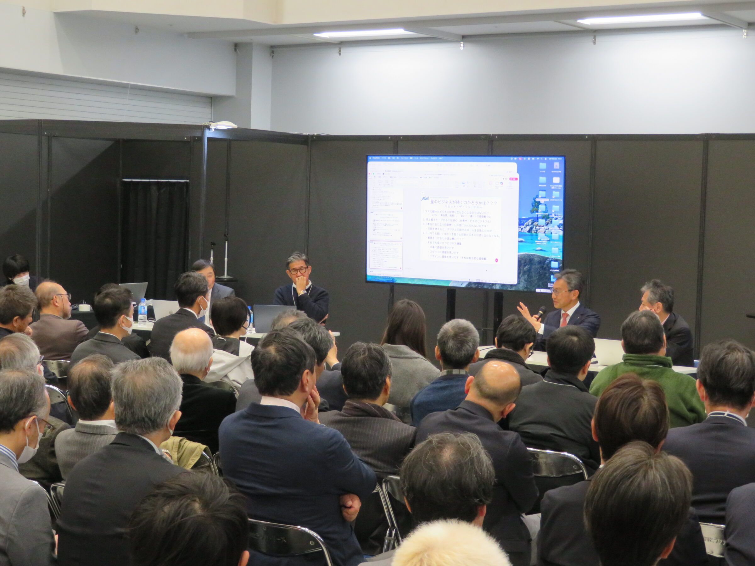 議論の終盤では、小規模印刷会社の生存戦略に焦点が当てられた。網野会長は、大量生産という前提が崩れた現在、地域に密着しクライアントと深い信頼関係を築いている印刷会社にこそチャンスがあると力説した。地域の特性を熟知していることが、従来のモデルに代わる最大の強みになるとした。