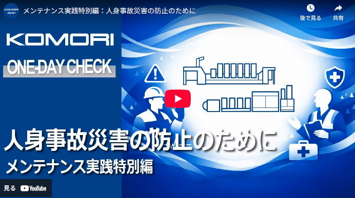 KOMORI YouTubeで新規動画「メンテナンス実践特別編:人身事故災害の防止のために」公開 印刷現場の安全確保に向けた8つの重要ポイントを解説