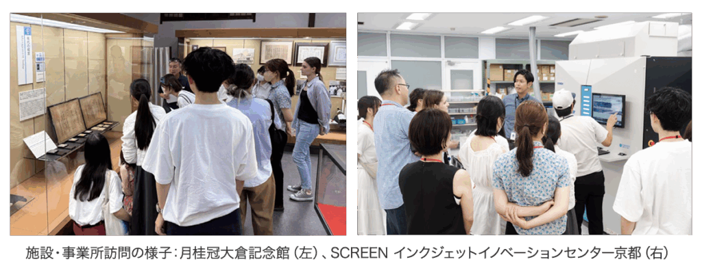 京都芸大の学生は、両社による事業所訪問や説明を経て、商業製品デザインの流れを学びながら日本酒ラベルを制作。SCREEN GAはデザインを高品質に印刷・加工し、月桂冠が自社の日本酒に貼付して販売する。