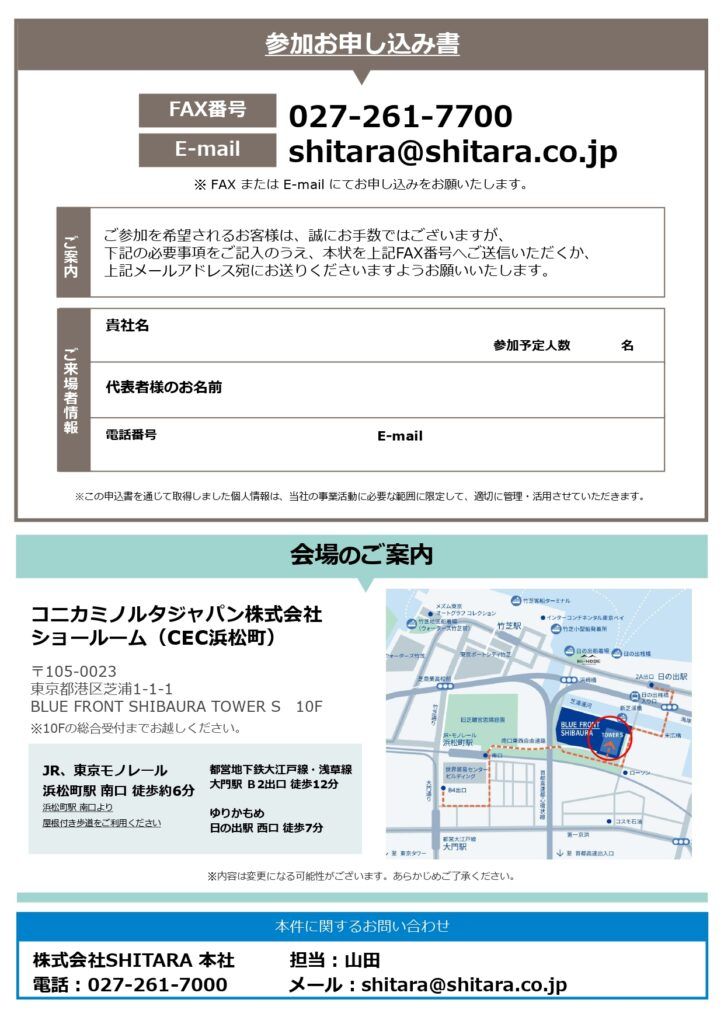 申込方法 参加申し込み書に必要事項を記入のうえ、FAXまたはメール(shitara@shitara.co.jp)へ送付。