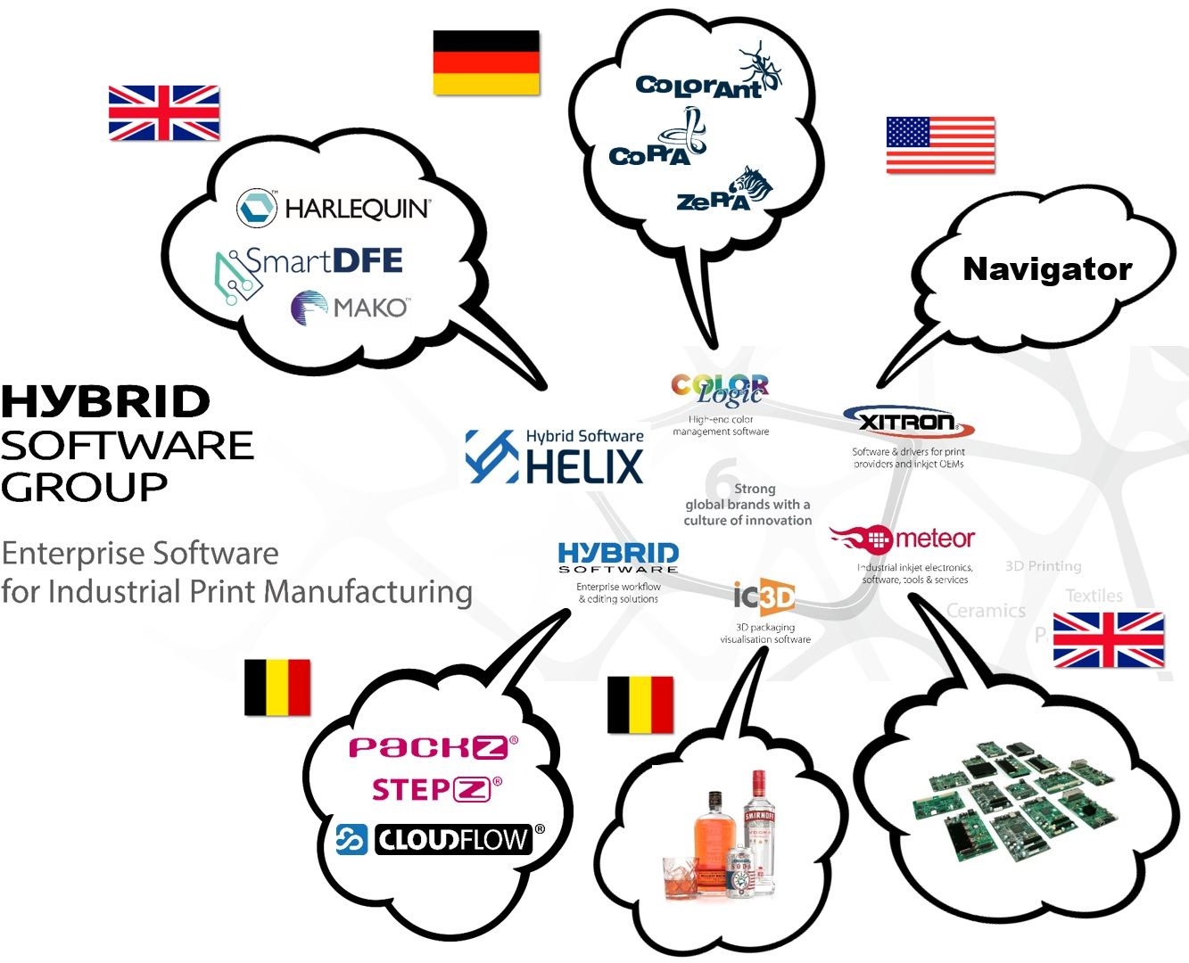 Global Graphics Softwareは英国ケンブリッジに本社を置き、印刷および電子ドキュメント分野におけるコア・ソフトウェアの開発を主な事業としているHybrid Software Group傘下の企業。2025年10月29日付で、社名を『Hybrid Software Helix Ltd.』へ改称した。グローバルグラフィックス株式会社は、2003年にGlobal Graphics Softwareのビジネスを日本ローカルで支援する目的で同社の子会社として設立され、現在ではHybrid Software Groupが所有するRIPコア、電子ドキュメントSDK、カラー技術、ワークフロー、3D技術、インクジェットヘッドドライバ技術などの業界をリードする先進技術や製品を日本市場に紹介し、その導入支援を行っている。