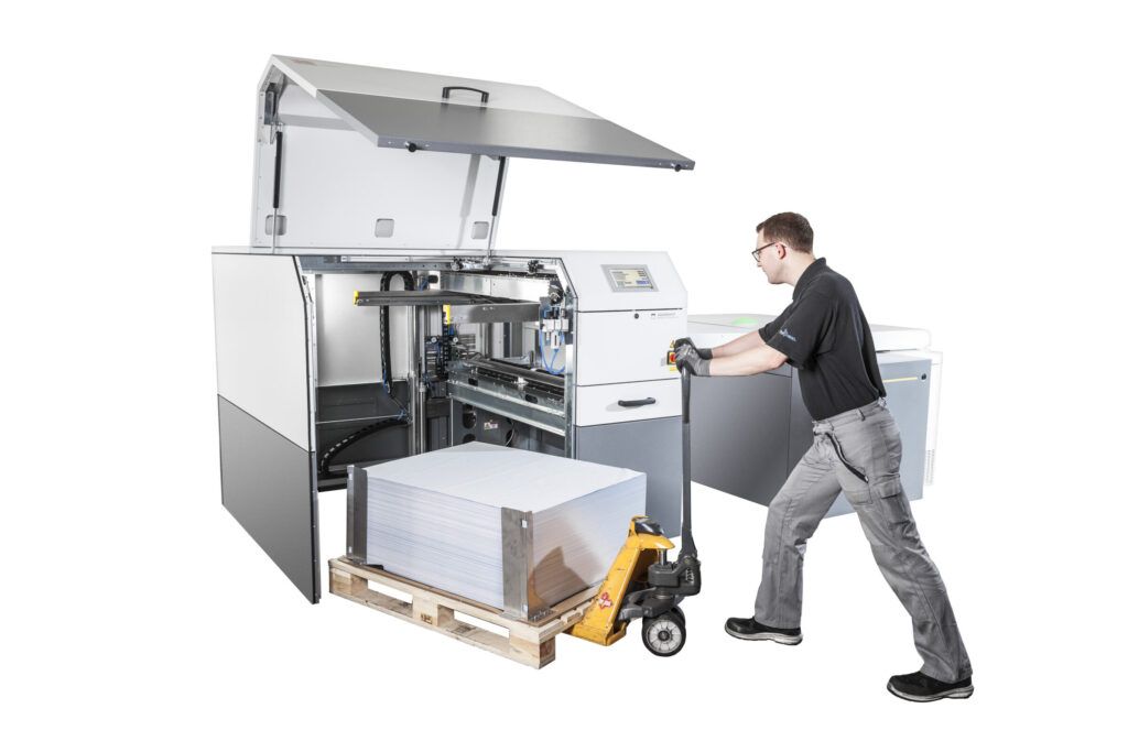 赤坂 CTPセッターはJDF/JMFでの運用にも対応していますから、MISとの連携によってプレートの出力枚数や版の状況を管理することができます。手差しタイプからパレット搬送型まで、自動化の度合いに応じた多様な構成を用意していますので、工場のレイアウトや仕事量に合わせて段階的に自動化を進めていただけます。