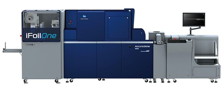 AccurioShine 3600はUVインクジェット方式によるニス加工機と箔押し機「iFoil One」が一体となったデジタル加飾機。エンボス(厚盛り)効果のある3Dニス加工からメタリック表現を実現する箔押しまで、付加価値の高い加飾印刷物を生産する。版や型を作成する必要がなく、最低1枚から印刷することが可能。試作から本生産までデザインの作成から変更、校正までを素早く行うことができる。生産機としての利用に加え、モックアップサンプルやテストマーケティング用途の多品種・少量生産など、印刷ビジネスに新たな可能性をもたらす。アナログ工程で発生する箔押しのための金型作成やシルクスクリーン印刷の製版で発生する中間廃材や廃液を大幅に削減し、環境への影響を最小限に抑える。