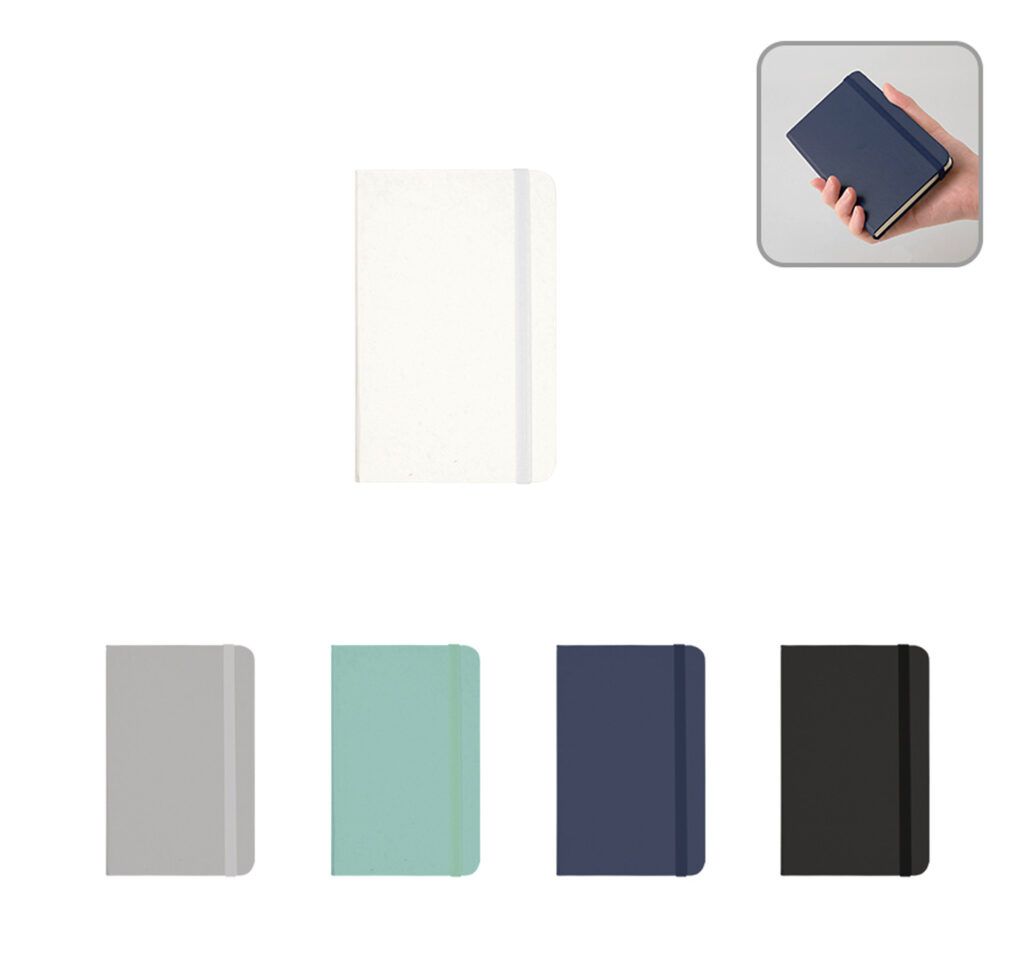 ハードカバーノートは、重厚感と高級感があり、展示会のノベルティとして定番アイテムである一方、会社や学校の記念品としても利用できる。手のひらに収まるコンパクトサイズのミニノート「ハードカバーハンディノート」やA5サイズの「ハードカバーA5ノート」等がある。