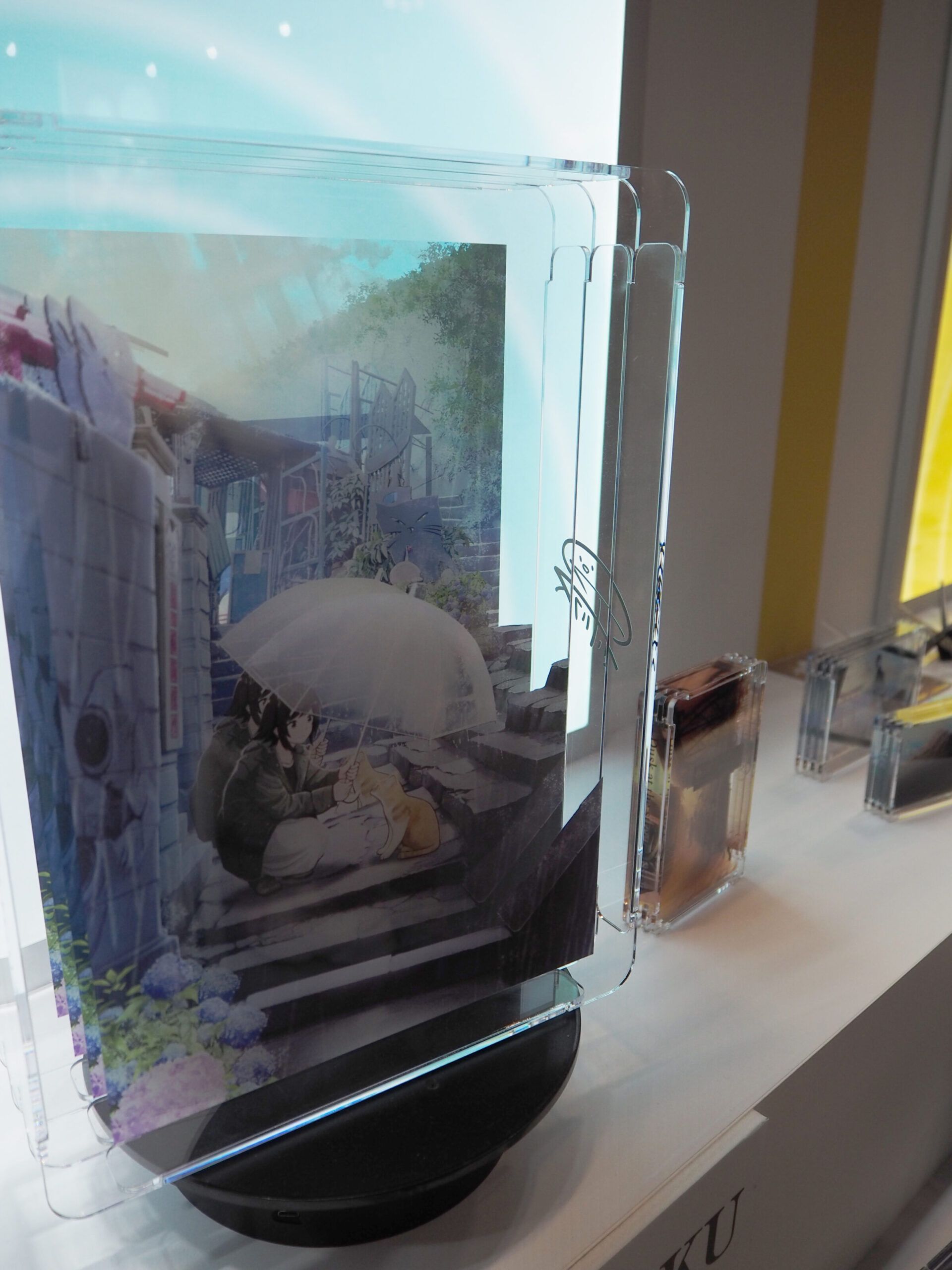 同社は同年3月に長らく商業印刷事業の主力だったオフセット輪転印刷機を撤廃し、グッズビジネスへと経営資源をシフトしてきた。この間、進行錯誤を繰り返してきたが、2024年7月に東京ビッグサイトで開催された『推し活EXPO』で一つの方向性が見えた。社員が開発した独自商品である『HACOレイヤー』、『ACZURU』、『variシリーズ』というアクリルを素材としたグッズがコンテンツホルダーやプロダクション、バイヤーなどの注目を集め、現在、その派生商品を中心に様々な取引が生まれている。