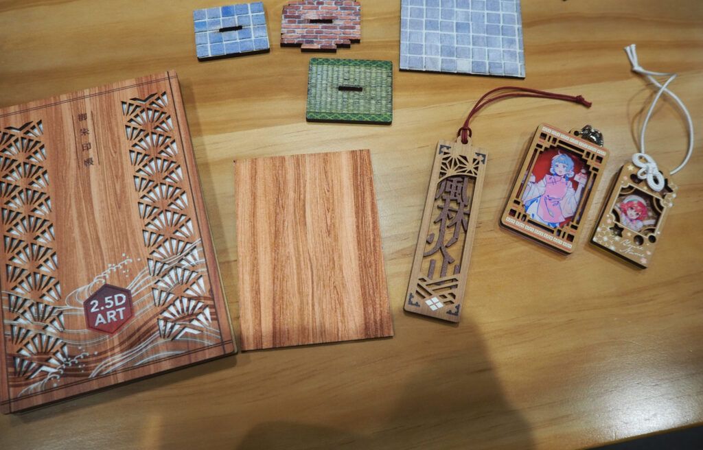 同社ではiPadテーブルの開発以前から、表紙に木材を採用した御朱印長など木製グッズを販売している。2019年には木製グッズを中心としたハンドメイドショップ『moku×moku』を開設。UVインクジェットプリンターやレーザー加工機などを駆使したグッズを提供してきた。