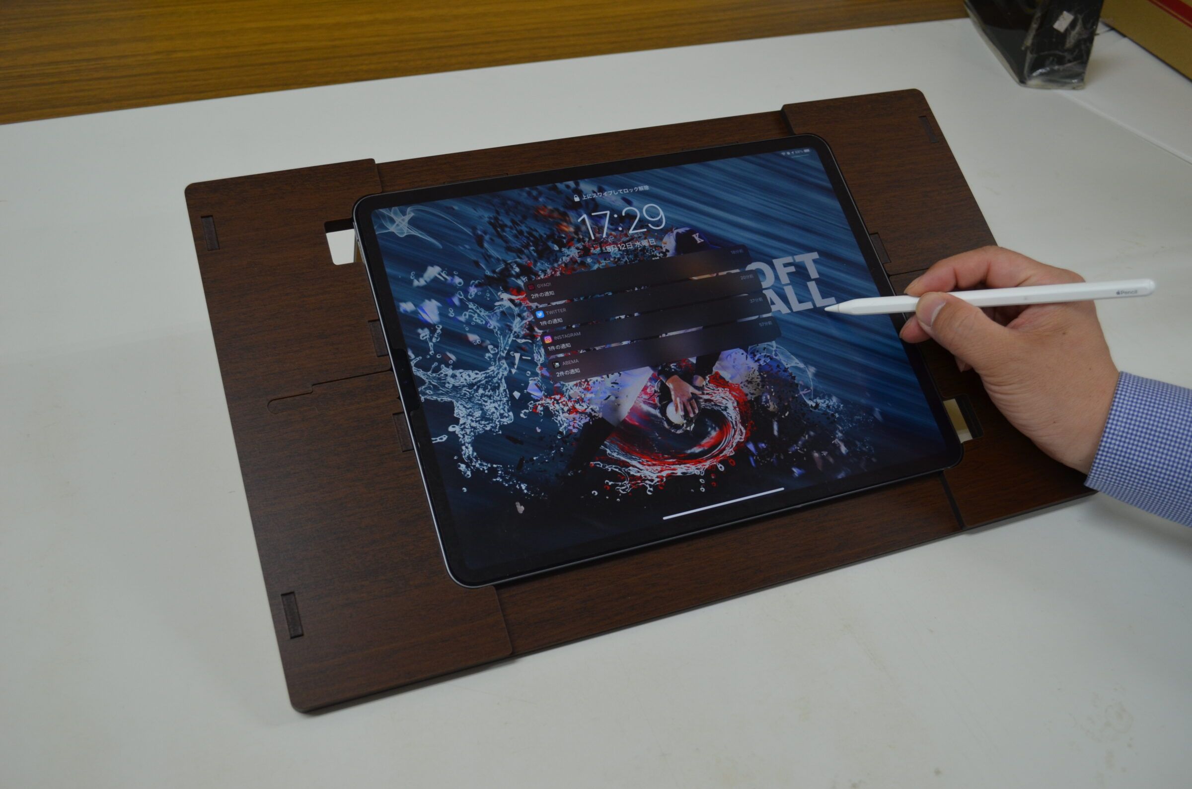 同時期にはiPad用の木製テーブルを開発した。iPadによる創作活動時に、テーブルの角度と手の置き場をつけ、首や肩にかかる負担を軽減させるもので、レーザー加工機で加工した。2020年5月1日に50個を先行発売したところ即日完売。1ヵ月で2,000個が売れて生産調整が必要なほどだった。