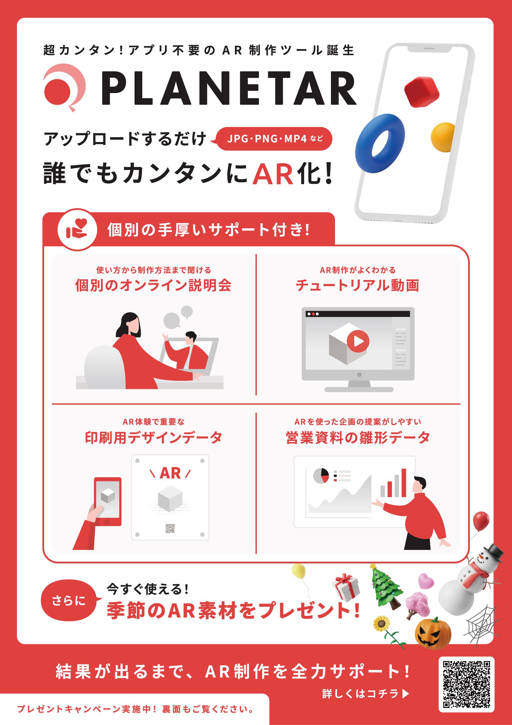 「プラネター」は様々な印刷物や広告、パッケージ等に手軽にARを付加し、リアルとデジタルを融合した新しい体験を提案する。既存の印刷事業に付加価値としてARを組み合わせることで、新規事業に成功されている例が急増している。