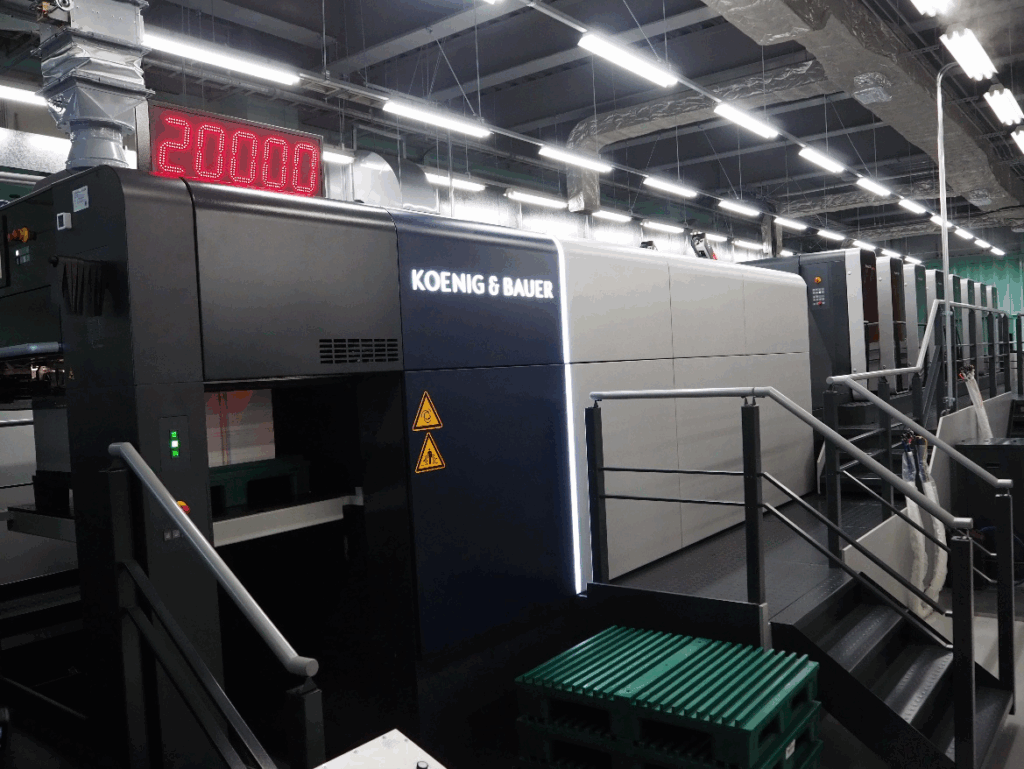 株式会社TOWA(大阪府東大阪市/高本禎郎社長)は2023年11月、ケーニッヒ&バウアー(KBA)の菊全判枚葉オフセット印刷機Rapida106 X―7+L SPC ALV3(以下Rapida 106)を導入し、厚紙印刷の生産体制を強化した。同社のRapida 106は7色+コーターの構成。前4胴がCMYK4色の薄紙印刷、後3胴がCMY3色の厚紙印刷の仕立てで、薄・厚の切り替え時間を短縮している。