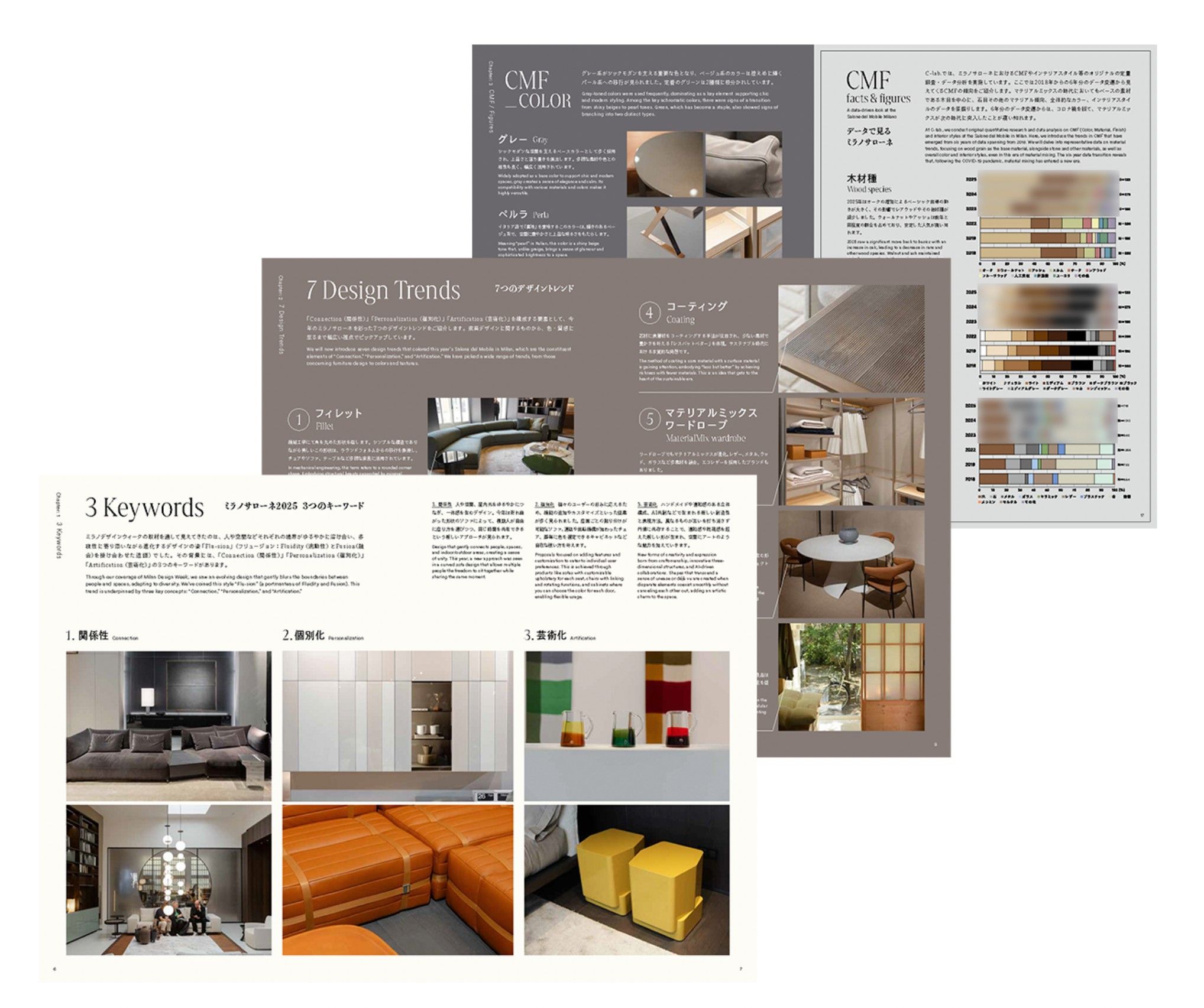 同レポートは、ミラノサローネをはじめとする世界的なデザイントレンドの動向を整理し、CMF(カラー・マテリアル・フィニッシュ)の最新傾向をビジュアルとともに紹介している。市場で注目される素材や色調の変化を多面的にまとめ、企業の企画・開発担当者が参照可能な情報を構成している。