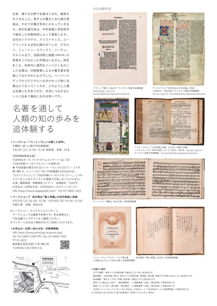 - 会場:印刷博物館(東京都文京区水道1丁目3番3号 TOPPAN小石川本社ビル)
