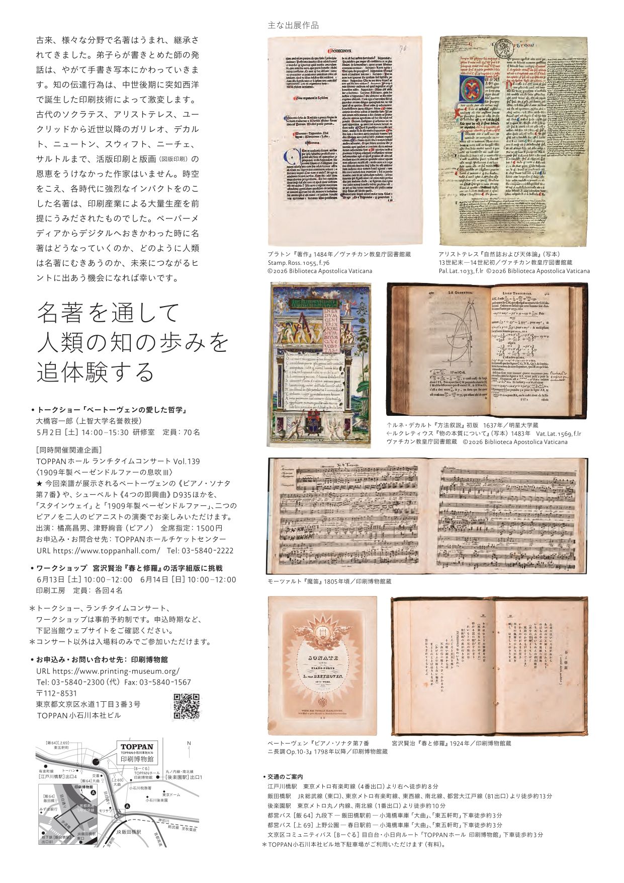 TOPPANホールディングス株式会社が運営する印刷博物館は、4月25日から7月20日まで、特別展「名著誕生展 ヴァチカン教皇庁図書館Ⅲ+」を開催する。ヴァチカン教皇庁図書館との共同企画により、古代から現代に至る名著の誕生と、それを支えた印刷技術の歴史的役割を再考する。