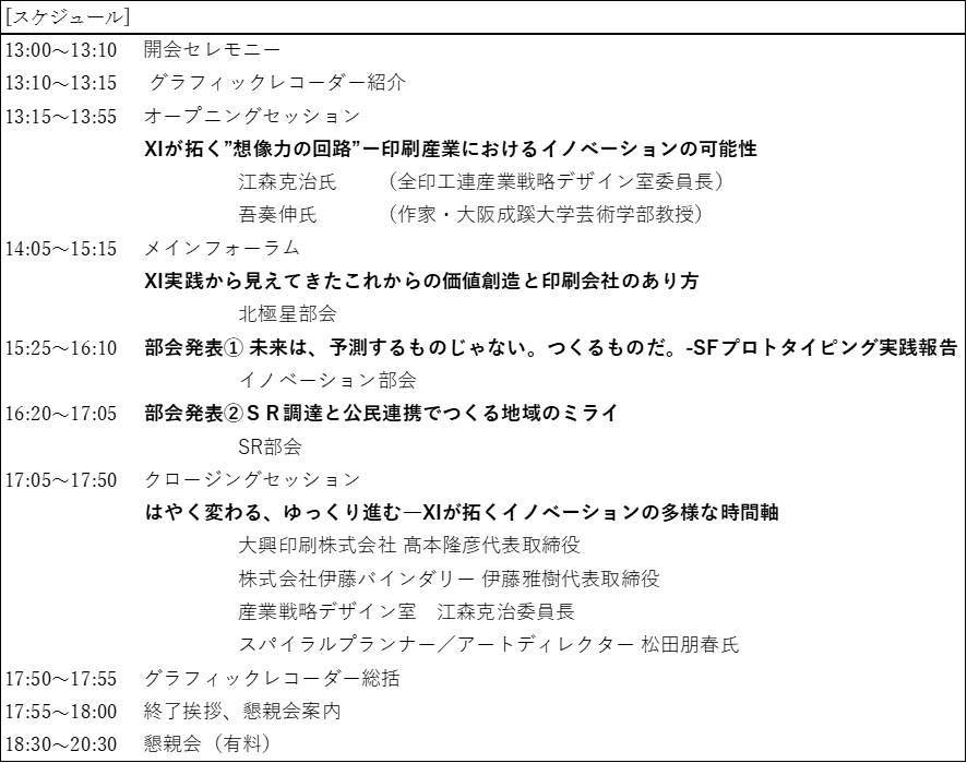 オープニングセッションでは産業戦略デザイン室の江森克治室長(株式会社ココラボ)と作家である吾奏伸氏が登壇。XIの概要と、実践を通して見えた未来の印刷会社の在り方について解説する。