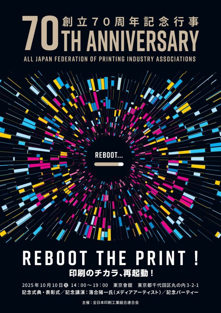 70周年記念行事のテーマは「REBOOT the PRINT! 印刷のチカラ、再起動!」。これまでの歴史を振り返ると同時に、未来に向けて業界が一致団結し、新たな決意を共有する場となる。